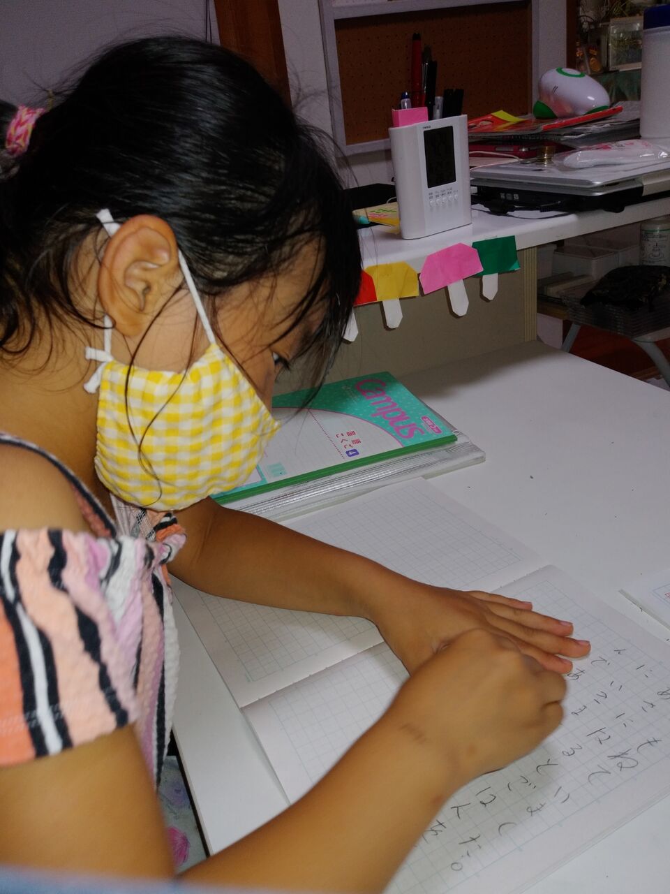 2020年06月24日 ☆一緒に(* ´ ▽ ` *)☆ 今日は文章の足し算続きといつあってもいいように漢字練習です( *´艸`)もちろん音読み訓読みしっかりと!!お互いいい刺激になり文章作りもヒートアップ笑出てくる出てくるいろんな言葉!すごいぞ(* ´ ▽ ` *)おうちの方に頑張った 証ノートみてもらおうね!お疲れ様でしたまた元気に来てね(*・∀・*)