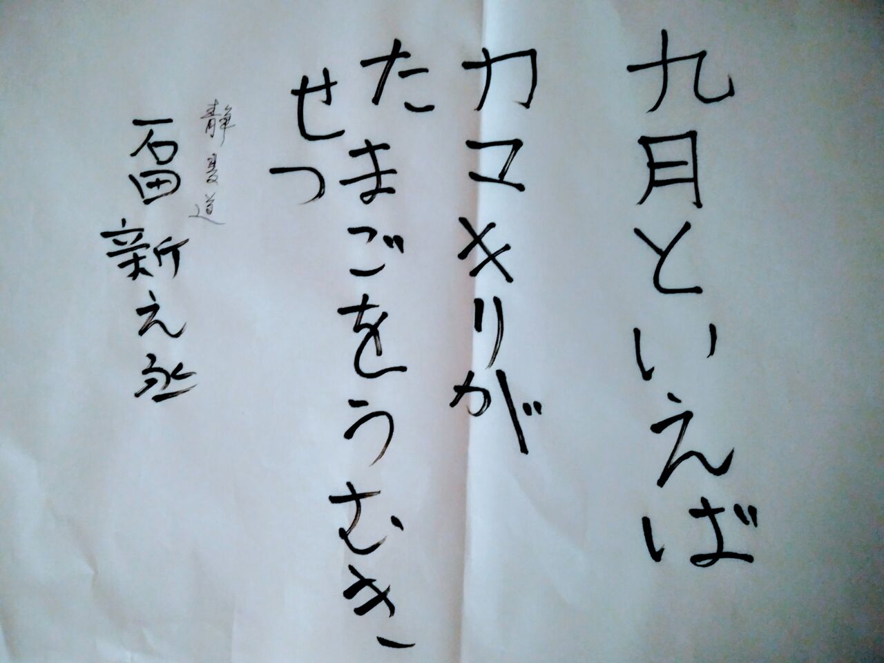 2020年09月27日 ☆誰かの為に☆ 季節書道今月は敬老の日がありましたね誰かを想い誰かの為に書く素敵ですよね土曜教室の生徒さんも気持ちを込めてしっかり書けました( *´艸`)おじいちゃんおばあちゃん喜んでくれますよ!!大事な検定大丈夫練習してきたんだから絶対絶対大丈夫!あなたの字をみてるとほんと頑張ってるのわかるから( ^-^)ノ∠※。.:*:・'°☆リスニングも9月終盤質問に答えるために聞くよい習慣がつきつつあります!!みんなまた来週ねお疲れ様( ´・∀・`)