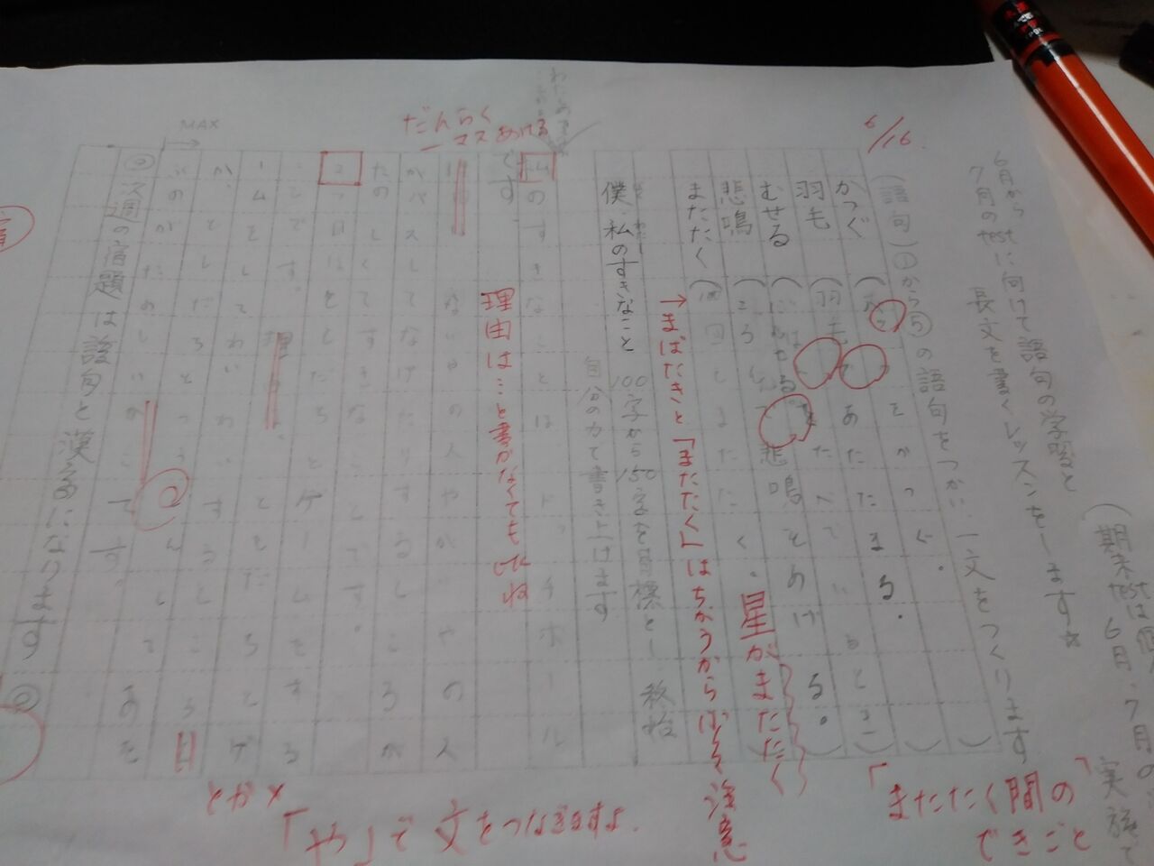 2021年06月22日 ☆作品順調☆ 清書用紙も自分たちで半分にしますo(^o^)oきれいに切って作品を仕上げます飾ってもらうの嬉しいね(^_^)宿題もほんとに立派な仕上がり自力でやるきつい作業きっと期末いい点数につながるよ休まずこつこつ積み重ね力試し頑張ろうね